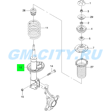 Опорный подшипник для Шевроле Реззо. Желательна замена при установке новых амортизаторов.